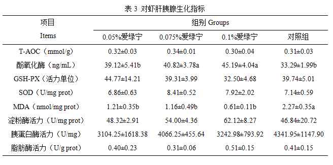 4.3 888集团宁对对虾肝胰腺生化指标的影响